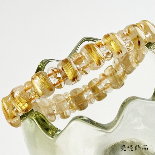 鈦晶,又稱「金髮晶」,其內部含有金紅石礦物,形成閃閃發光的金線,