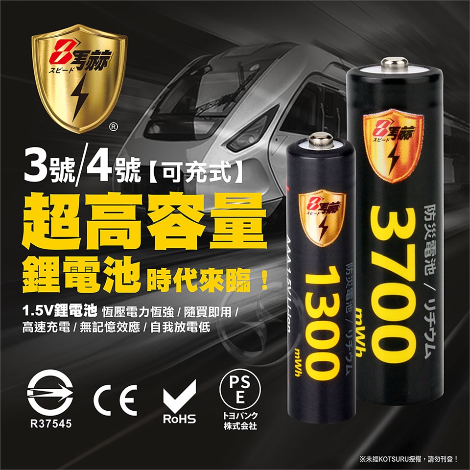 【8馬赫】4號/AAA恆壓可充式1.5V鋰電池: