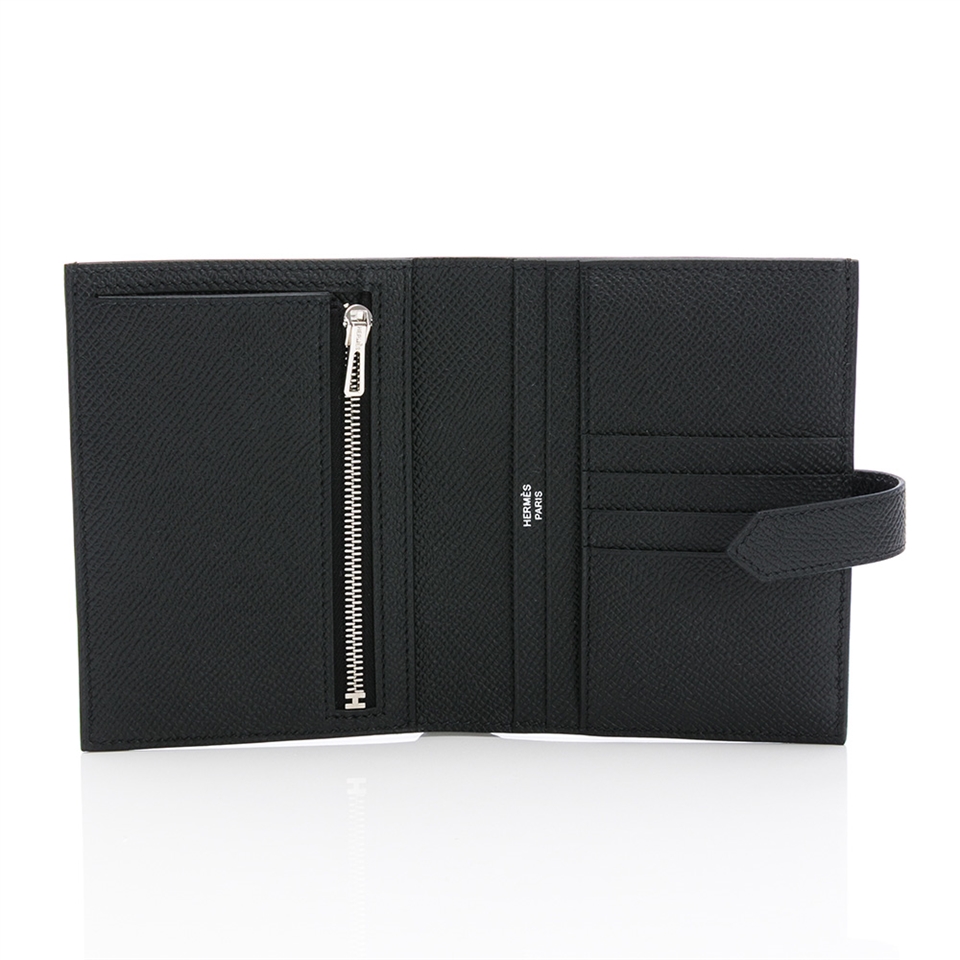 Hermes Bearn雙折短夾(黑/銀) (H039790CK89)