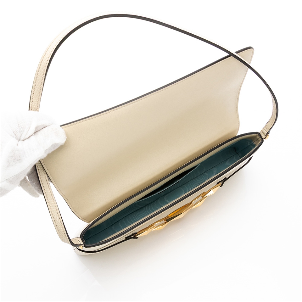 Jimmy Choo Diamond Shoulder E/W (蜥蜴紋印花皮革包)(白/金)