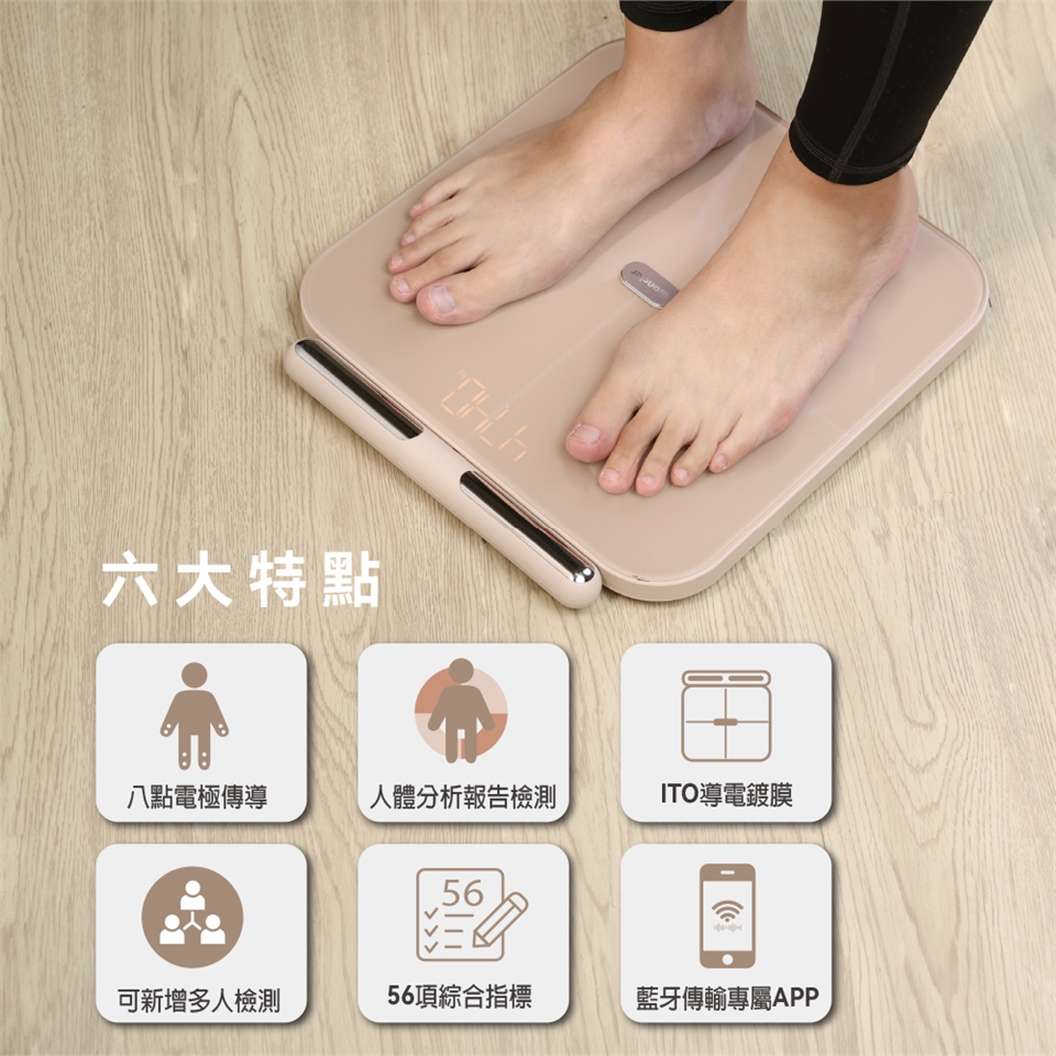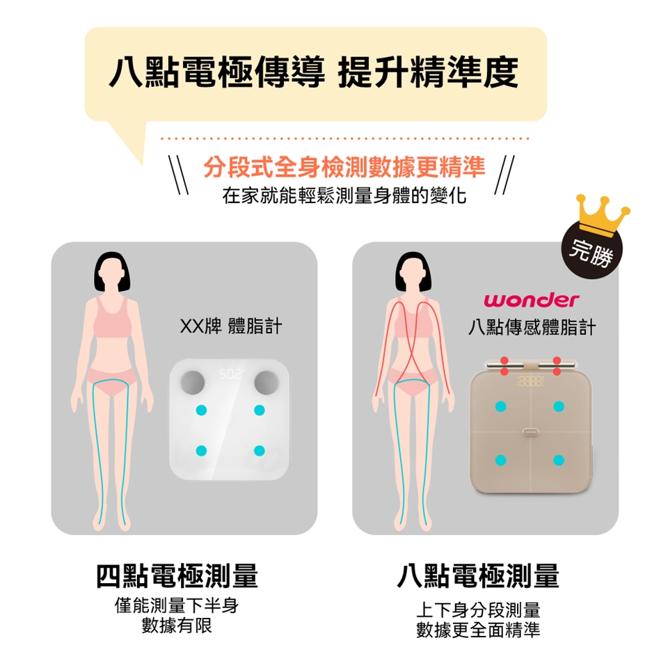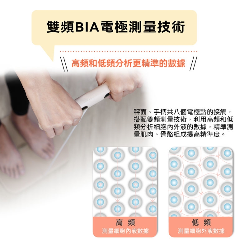 | ◆八點電極傳導,上下身多段式測量更精準 |