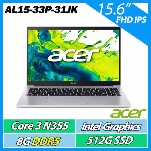 ACER 宏碁Aspire AL15-33P-31JK 銀(C3-N355/8G/512G SSD/W11/15.6FHD)效能筆電