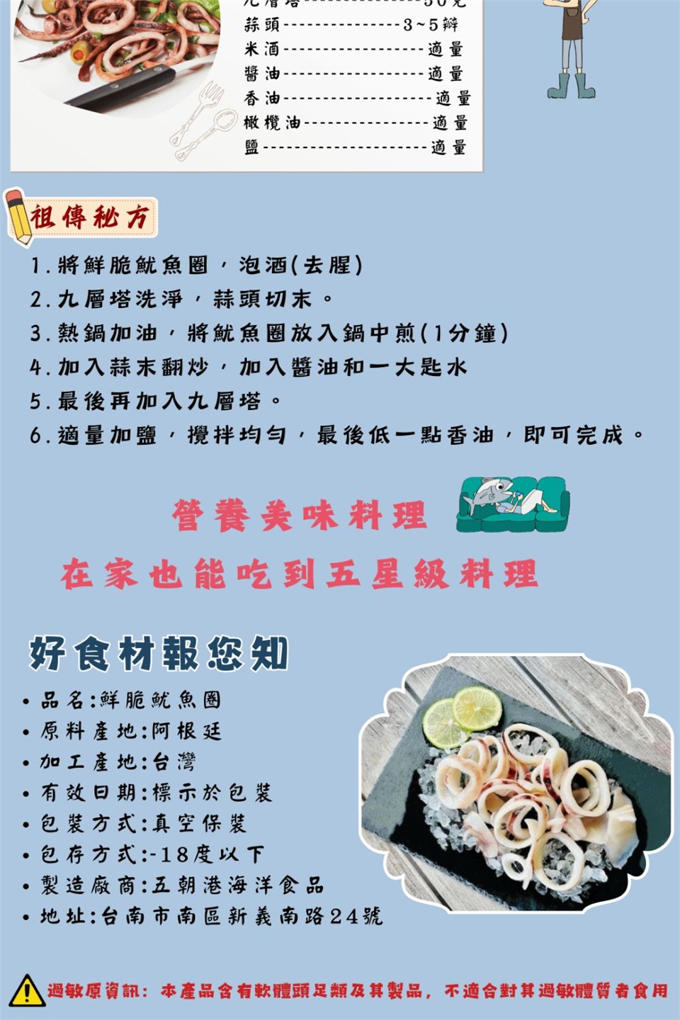 🌊過敏原:本產品含有軟體頭足類及其製品不適合其過敏體質者食用