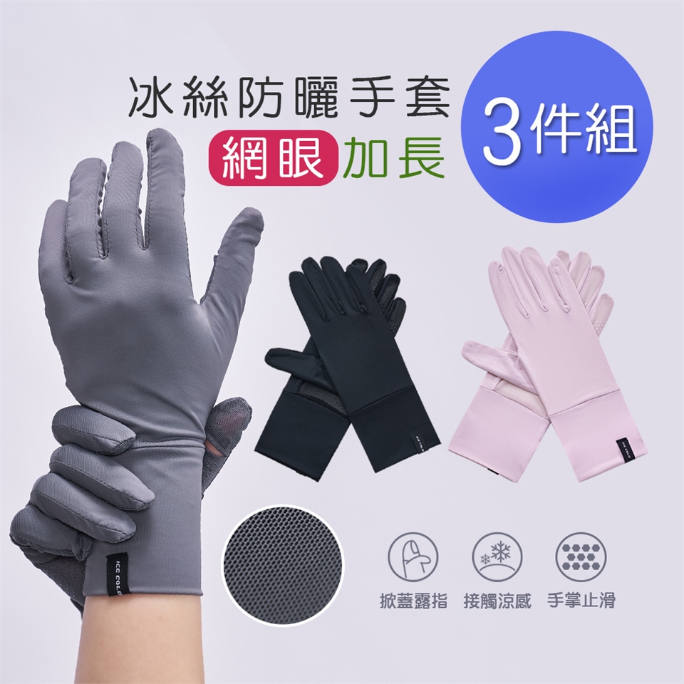 【冰透掀蓋手套(網眼款)-3件組】