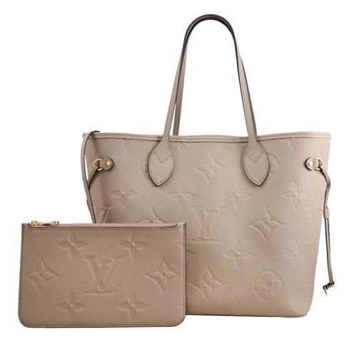 Louis Vuitton LV M45686 NEVERFULL MM 經典壓花束口購物包.斑鳩灰