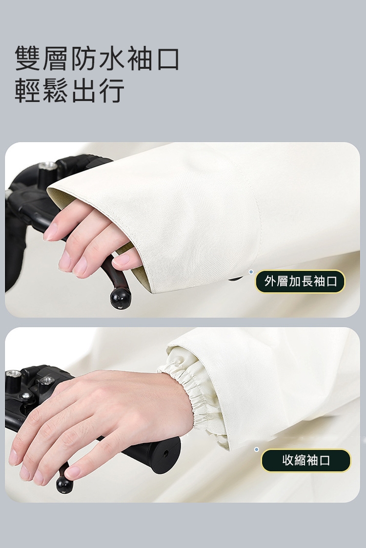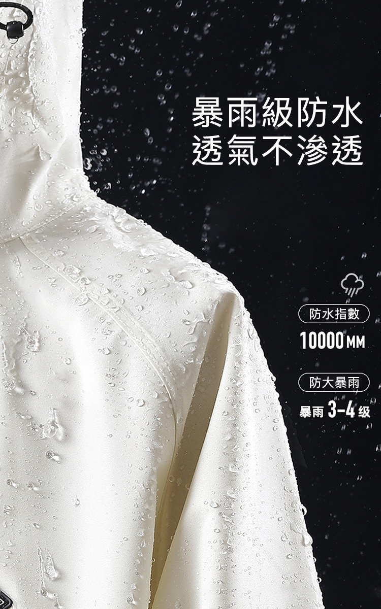 8.領口及袖口請調整到適當空間,避免因空隙過大造成滲水。