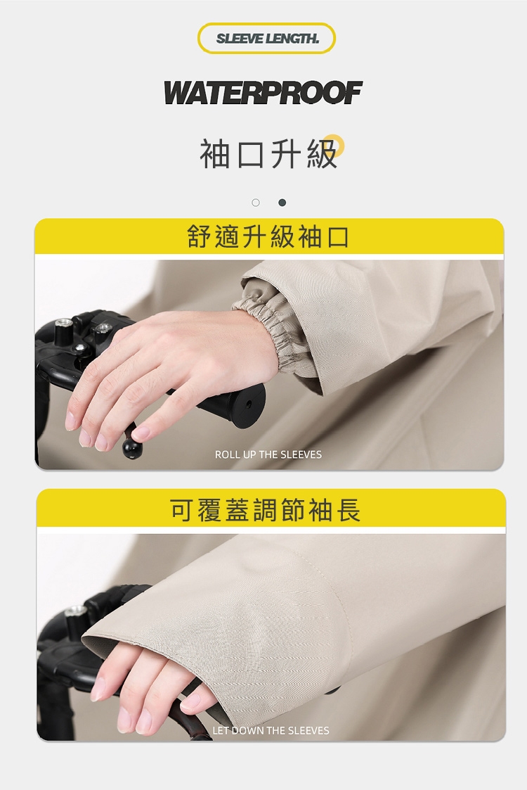 8.領口及袖口請調整到適當空間,避免因空隙過大造成滲水。