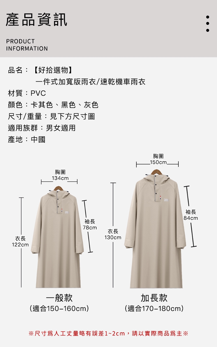 品名:【好拾選物】一件式加寬版雨衣/速乾機車雨衣(加長款)