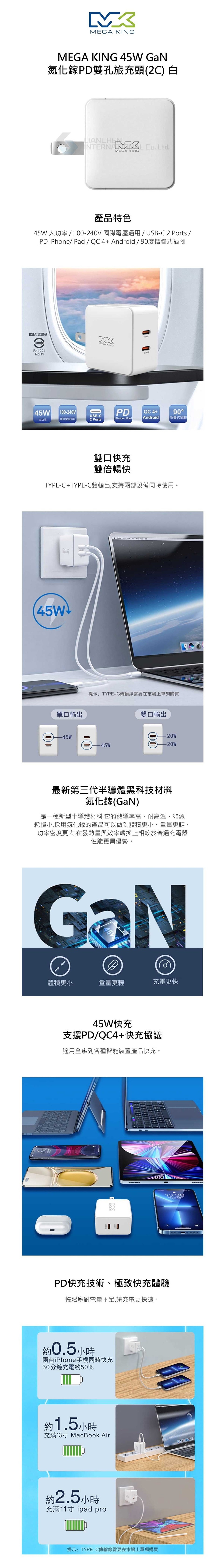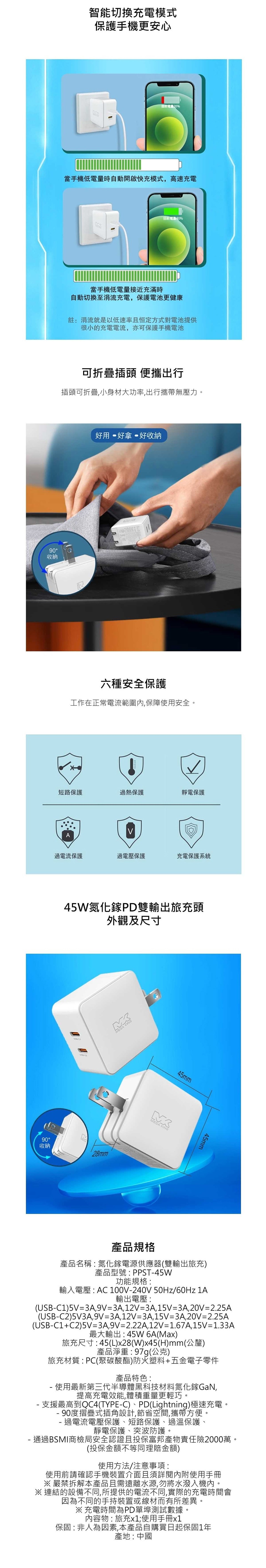 品名:45W GaN氮化鎵PD雙孔旅充頭