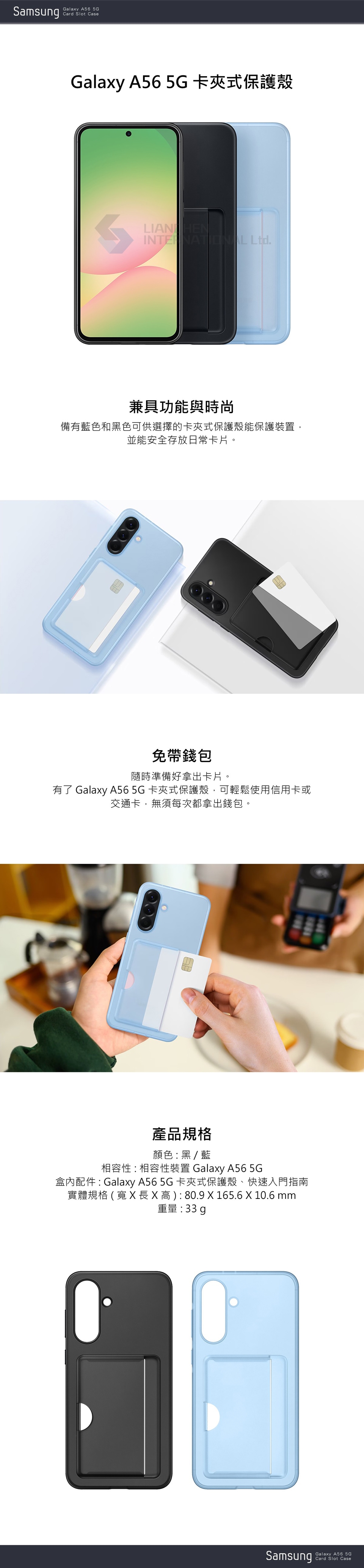 內容物:Galaxy A56 5G 卡夾式保護殼、快速入門指南