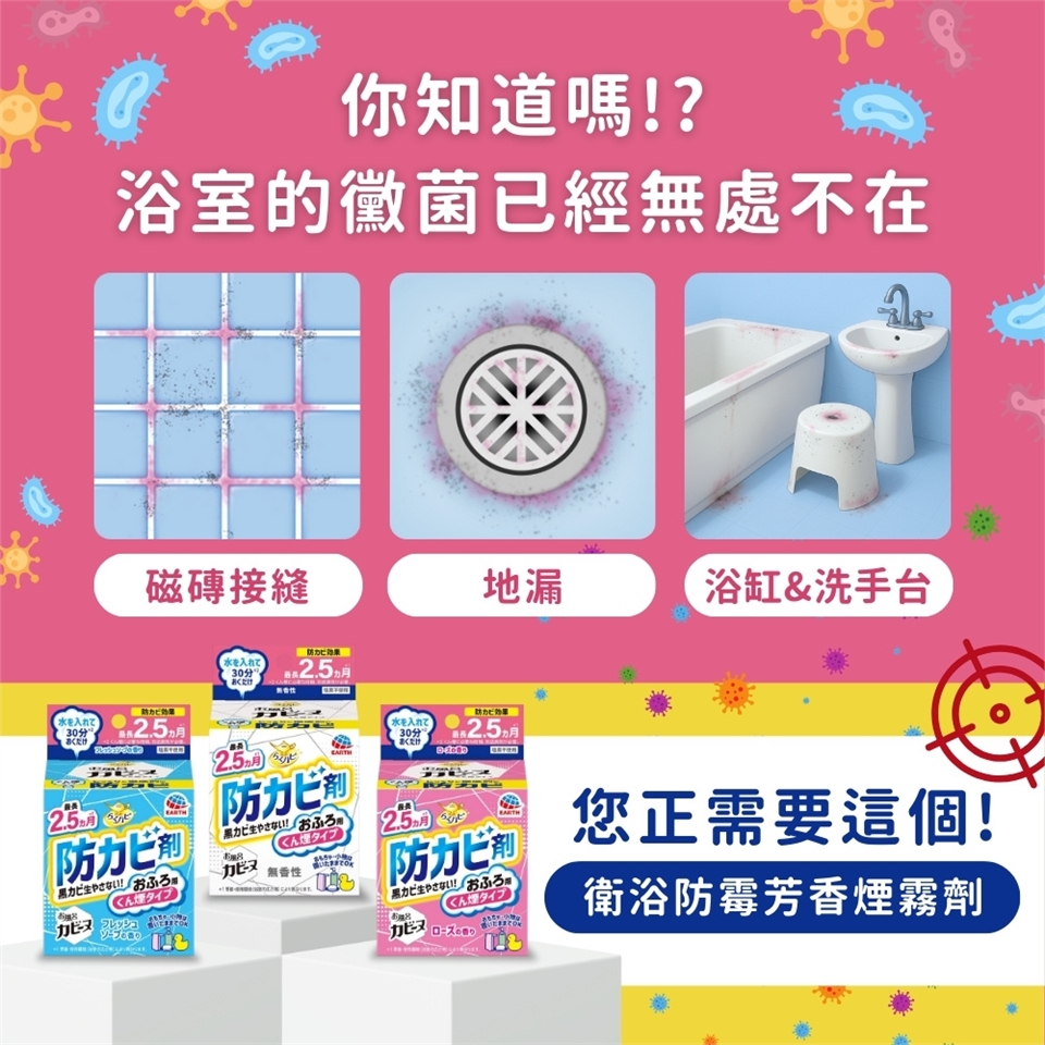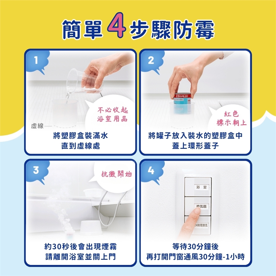 【用途】衛浴專用防霉煙霧劑,預防黑霉生長。