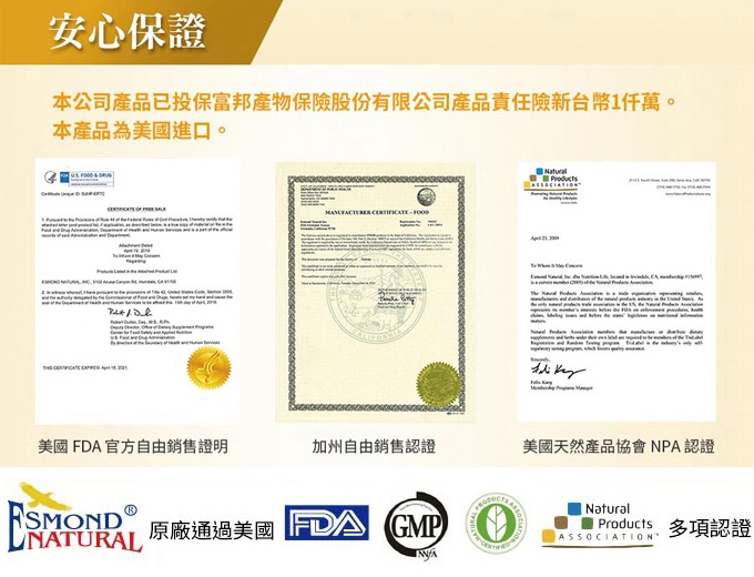◆製造廠:ESMOND NATURAL INC. 5316 IRWINDALE AVENUE,IRWINDALE,CA 91706,U.S.A.製造廠