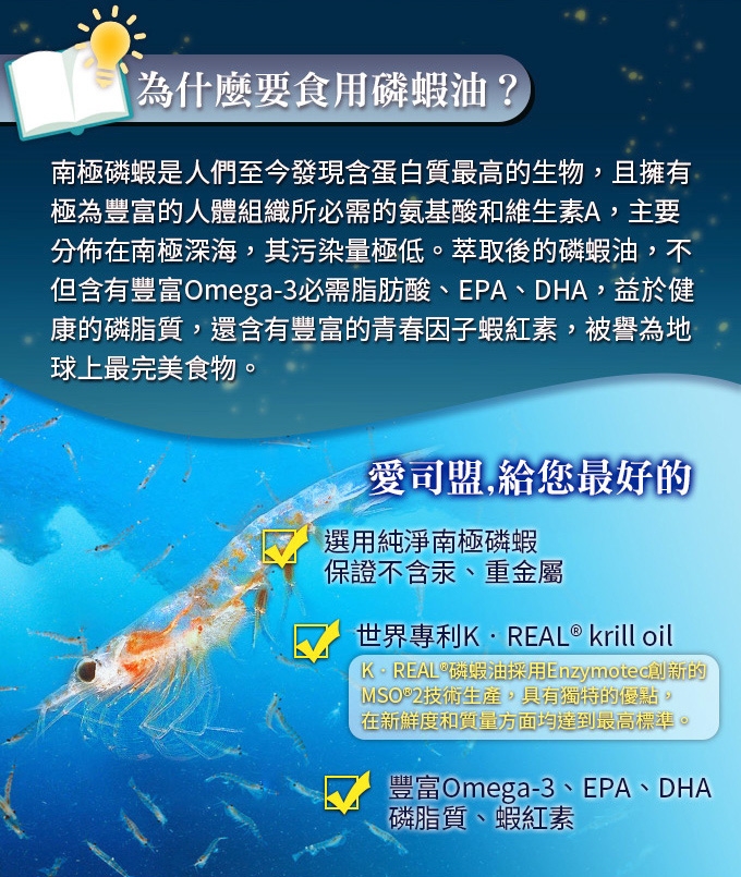 ◆產品成份:磷蝦油(含蝦青素)、明膠、魚油(取自鮭魚)