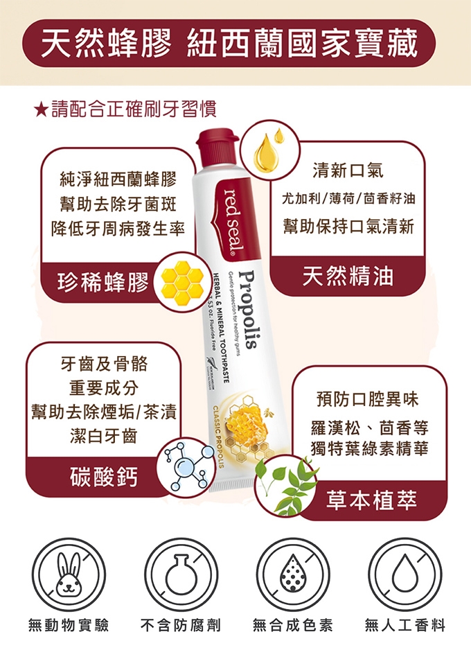 ★贈品名稱:紐西蘭Red Seal 蜂膠牙膏 (每條100g X 1條)