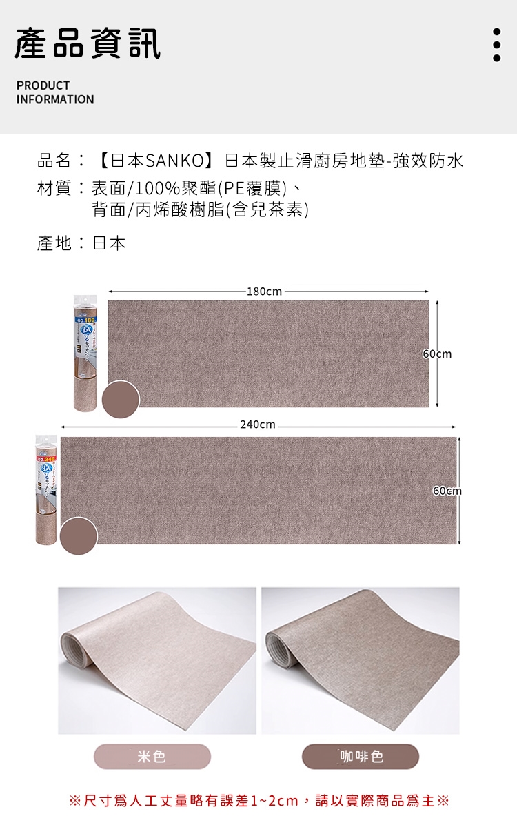 品名:【日本SANKO】日本製止滑廚房地墊-強效防水