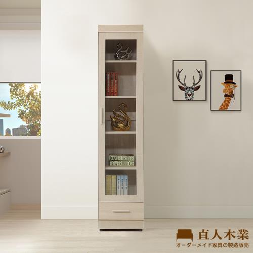 【直人木業】COCO奶油風下一抽玻璃書櫃40公分