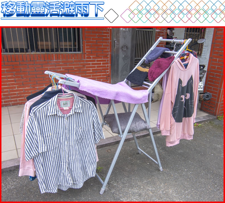 輕巧易攜,適合旅行或臨時使用,隨時隨地都能曬衣服。