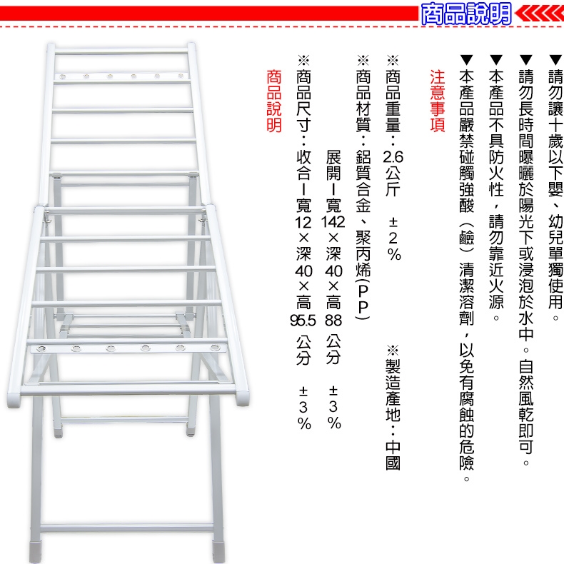 商品尺寸:收合-寬12x深40x高95.5公分 ±3%