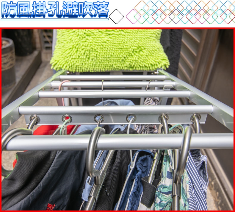 採用鋁合金製作,結構堅固,能承受較重的衣物,長久耐用。
