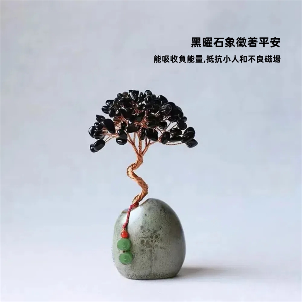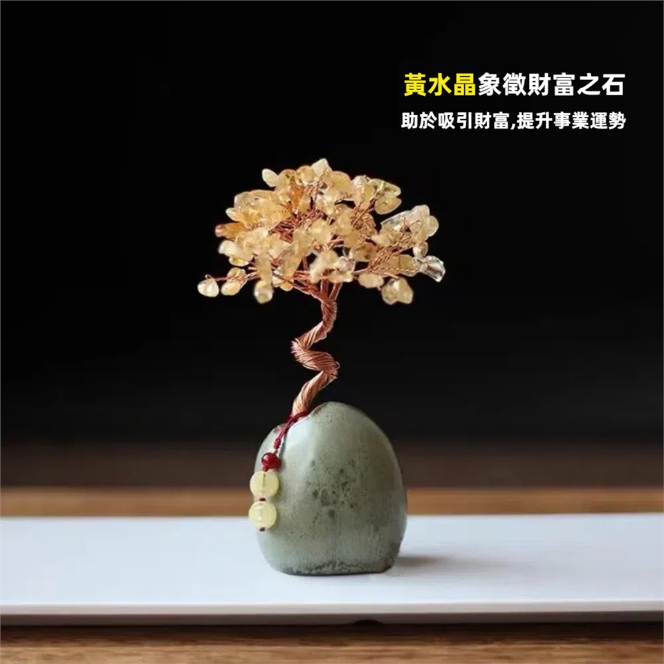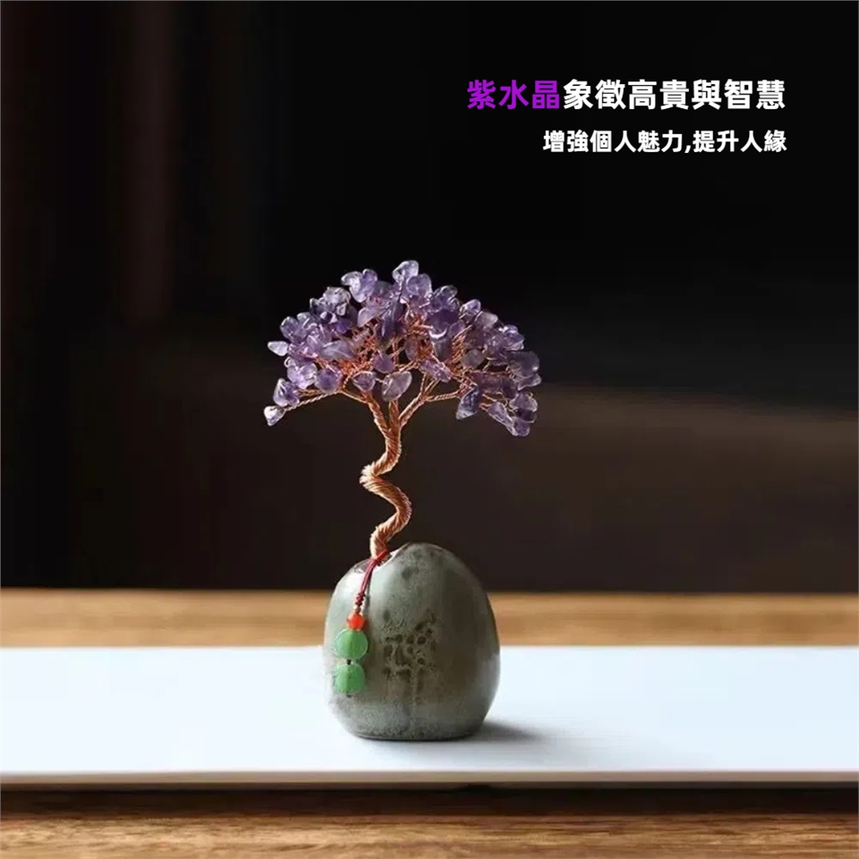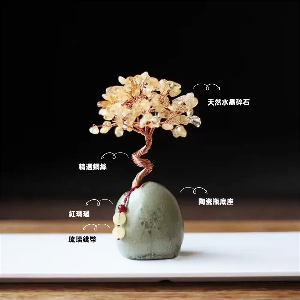 *水晶樹附琉璃錢幣吊飾,顏色隨機出
