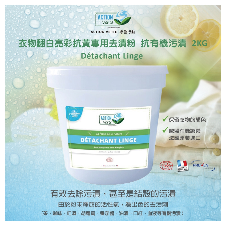 【綠色行動】有機污漬衣物專用去漬粉 -翻白亮彩抗黃 *100%天然成分 2KG,100%天然成分,讓泛黃的衣物重新回復原有光彩~