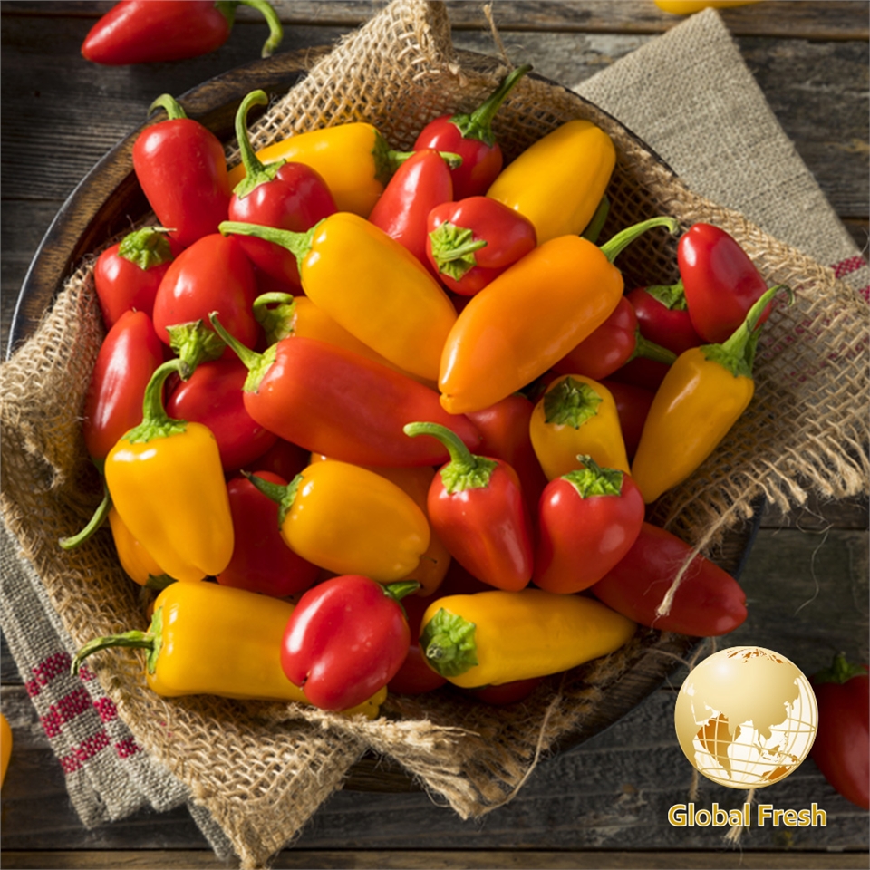 迷你彩椒屬茄科植物,果形嬌小,果實靚麗紅、黃、橘、紫,色彩繽紛,纖維細緻,鮮脆清甜可口多汁,