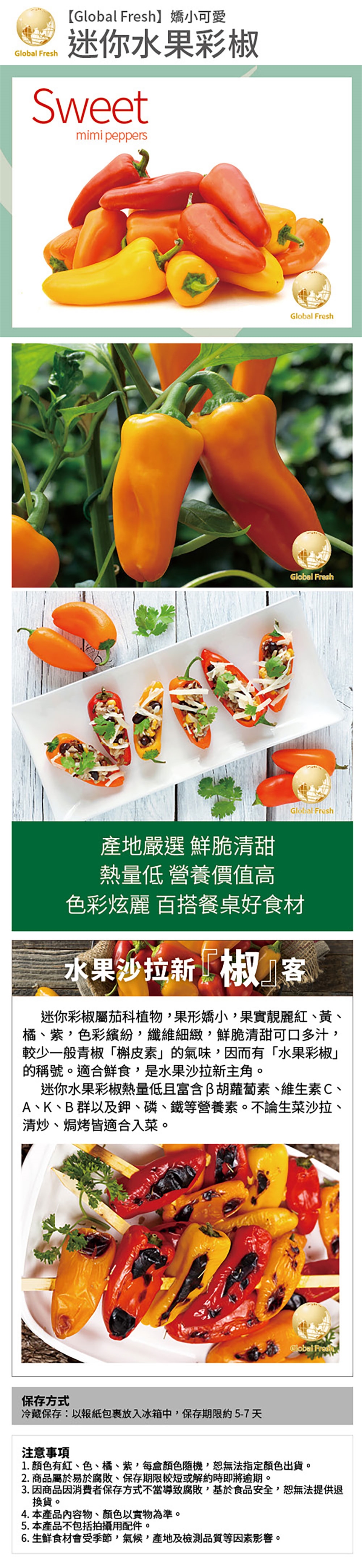 ※迷你彩椒顏色有紅、色、橘、紫,每盒顏色隨機,恕無法指定顏色出貨。