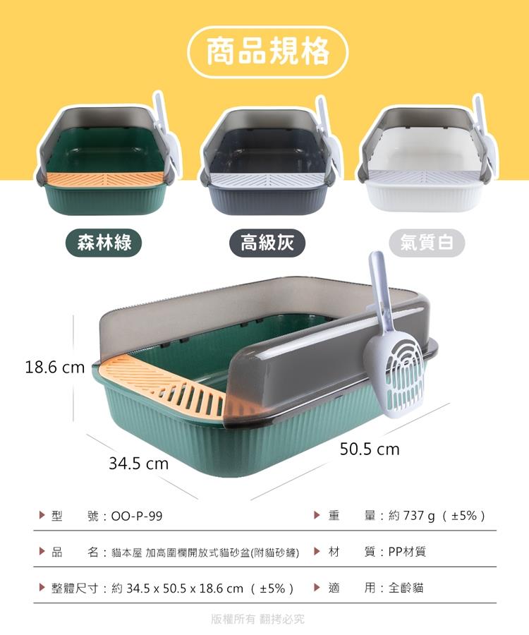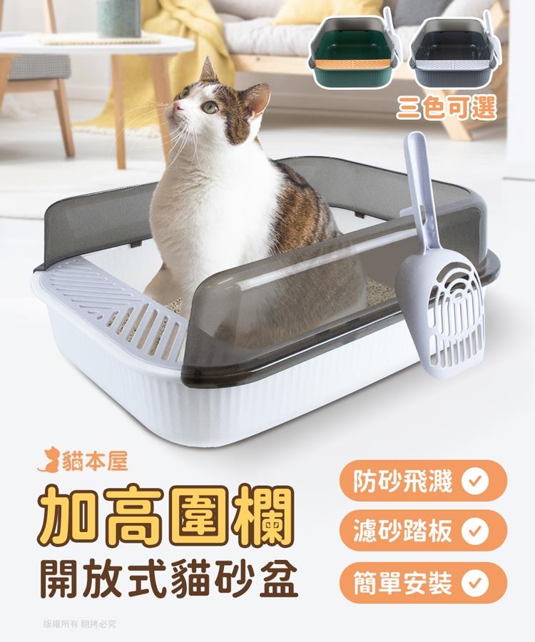 貓本屋 加高圍欄開放式貓砂盆(附貓砂鏟)