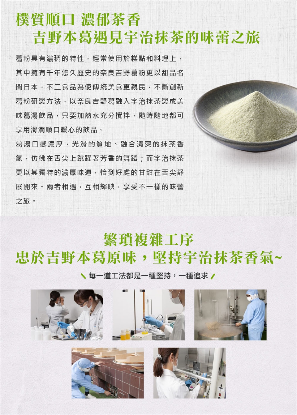 每天一杯抹茶葛根粉讓您同時享受吉野本葛的優雅風味和宇治抹茶的香氣,