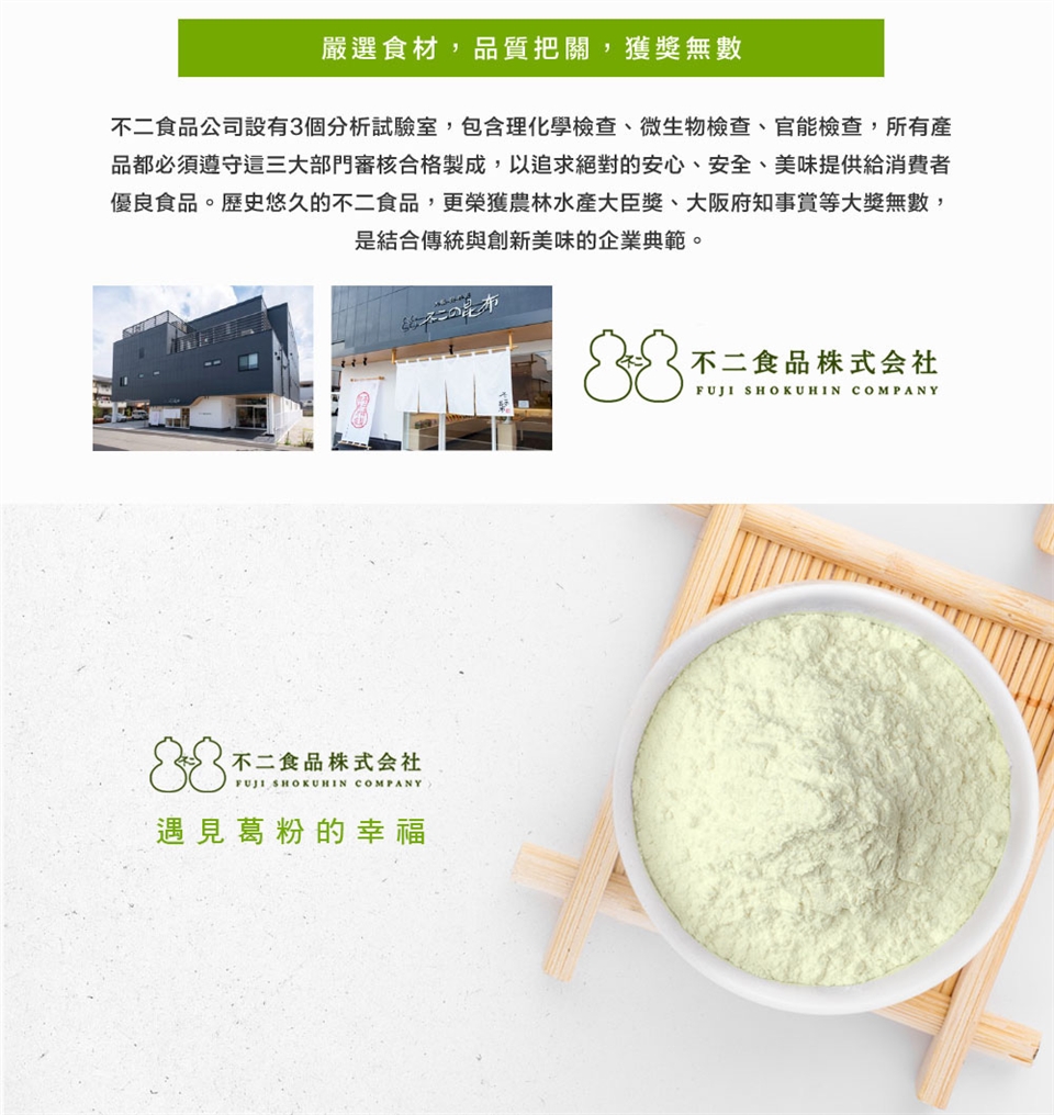 以追求絕對的安心、安全、美味提供給消費者優良食品。歷史悠久的不二食品,更榮獲農林水產大臣獎、大阪府知事賞等大獎無數,是結合傳統與創新美味的企業典範。