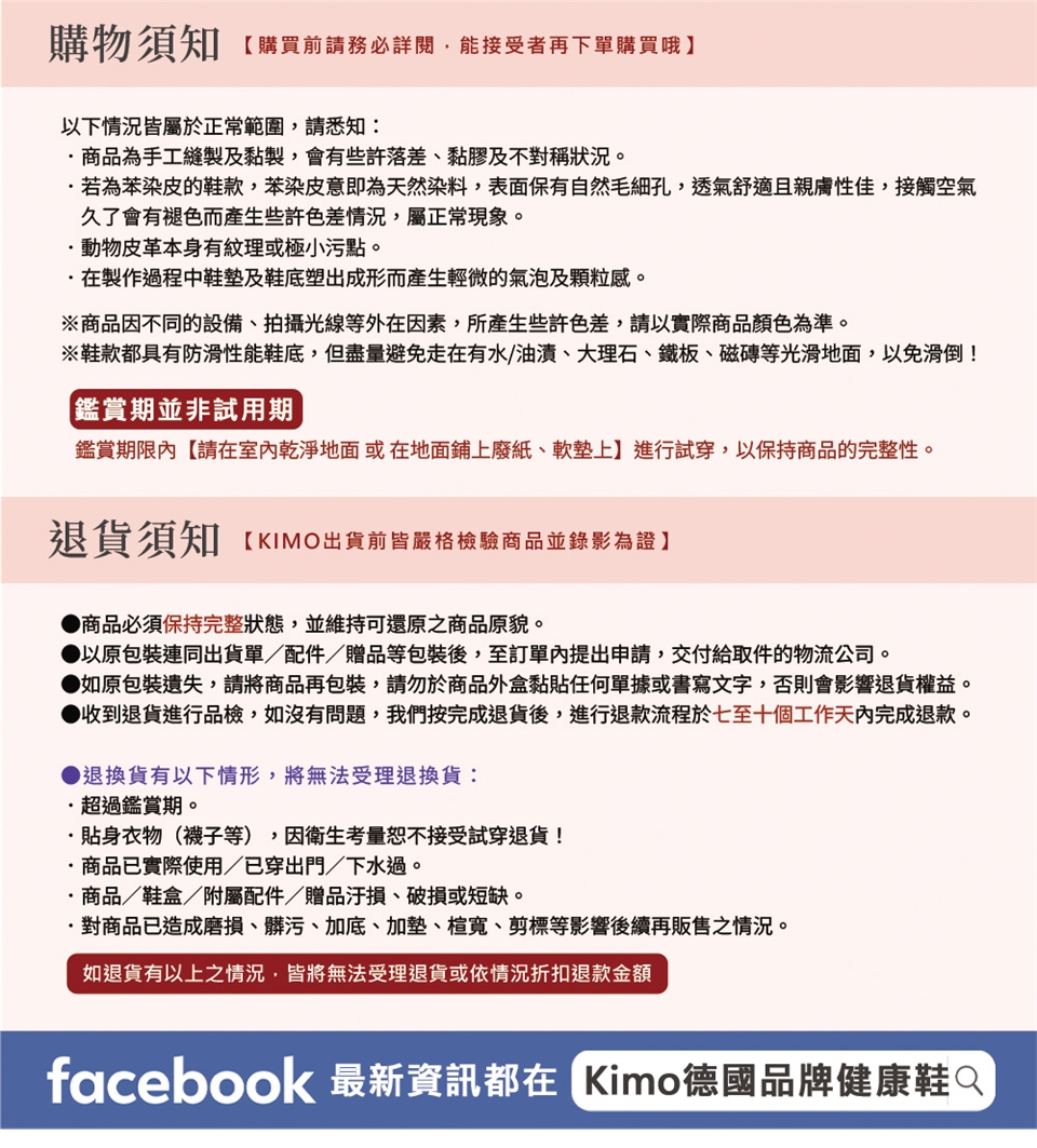 ●若紙箱已遺失,請於商品鞋盒上再包裝;勿直接讓商品Kimo鞋盒黏貼宅配單或書寫文字。