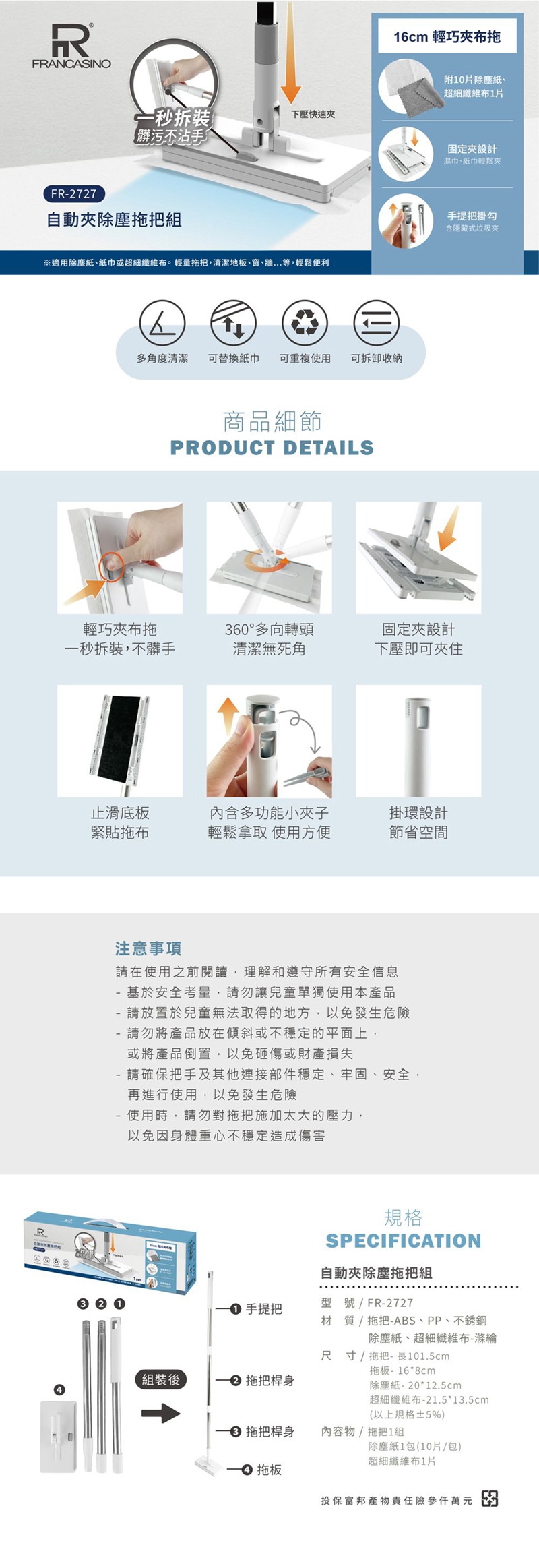 上拉桿子打開夾板,對準清潔布一壓即可夾起
