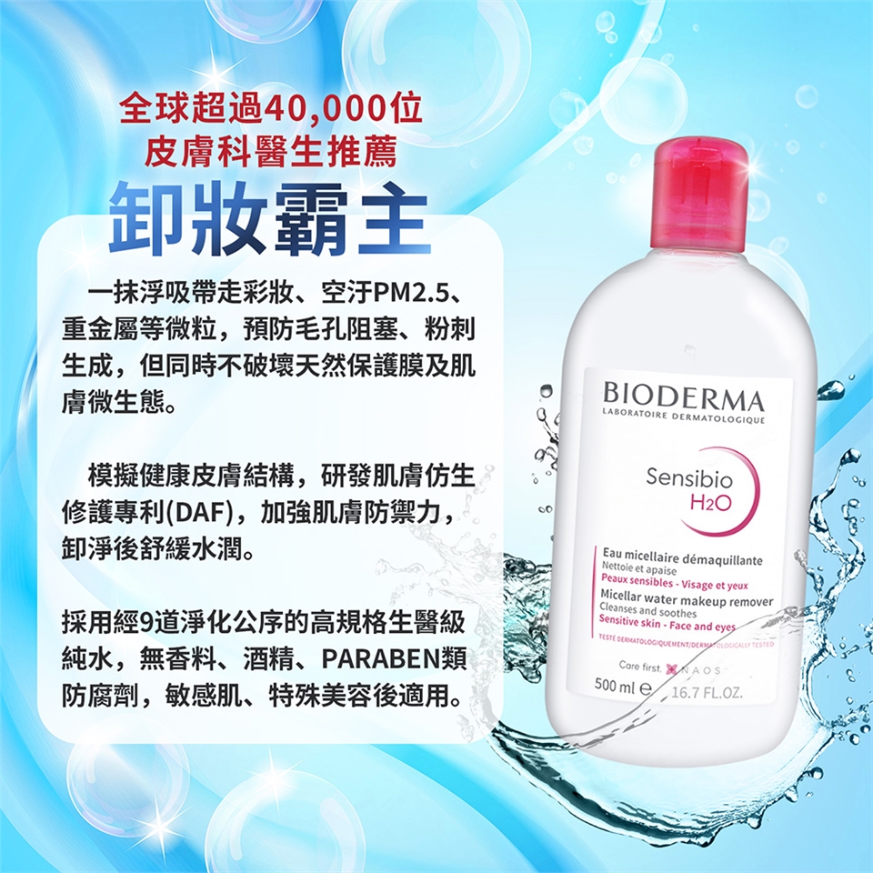 中文品名:BIODERMA 舒敏高效潔膚液(500ml)X8-國際航空版