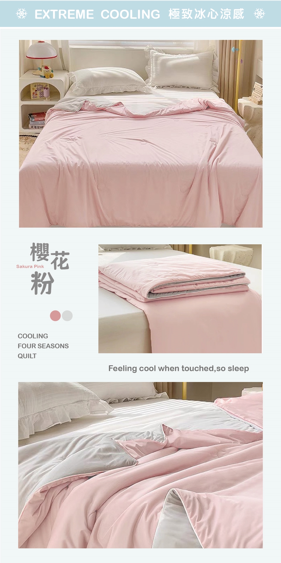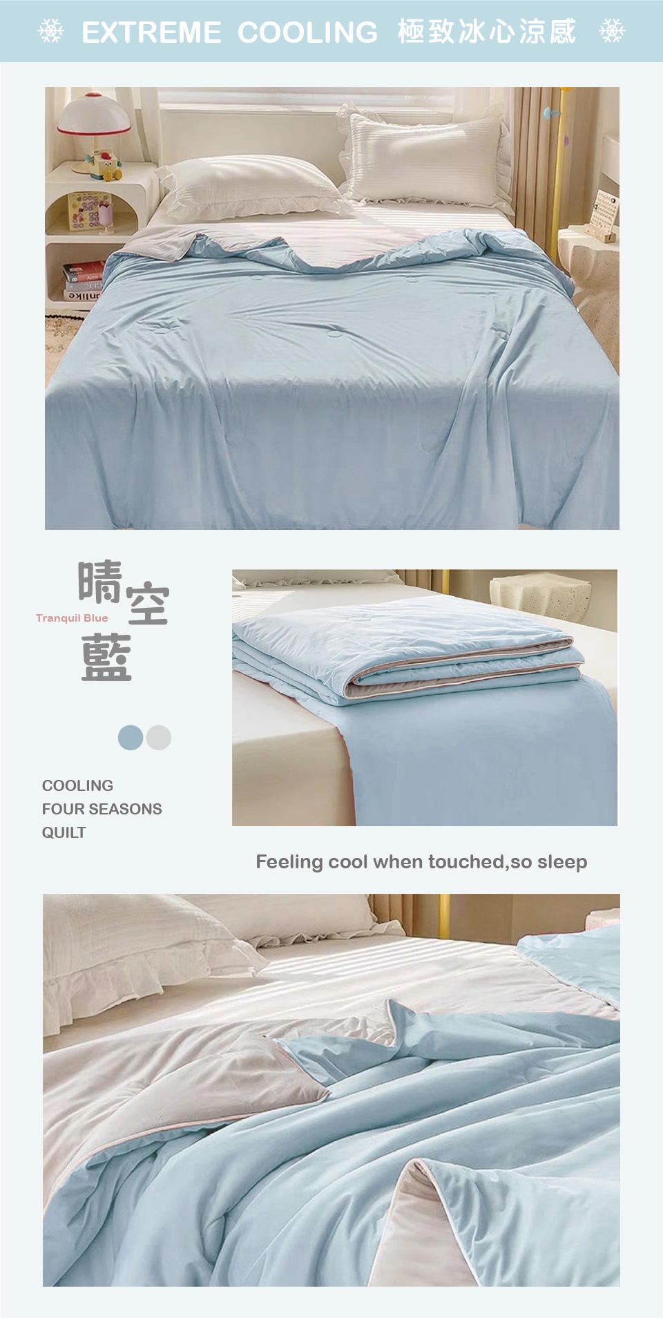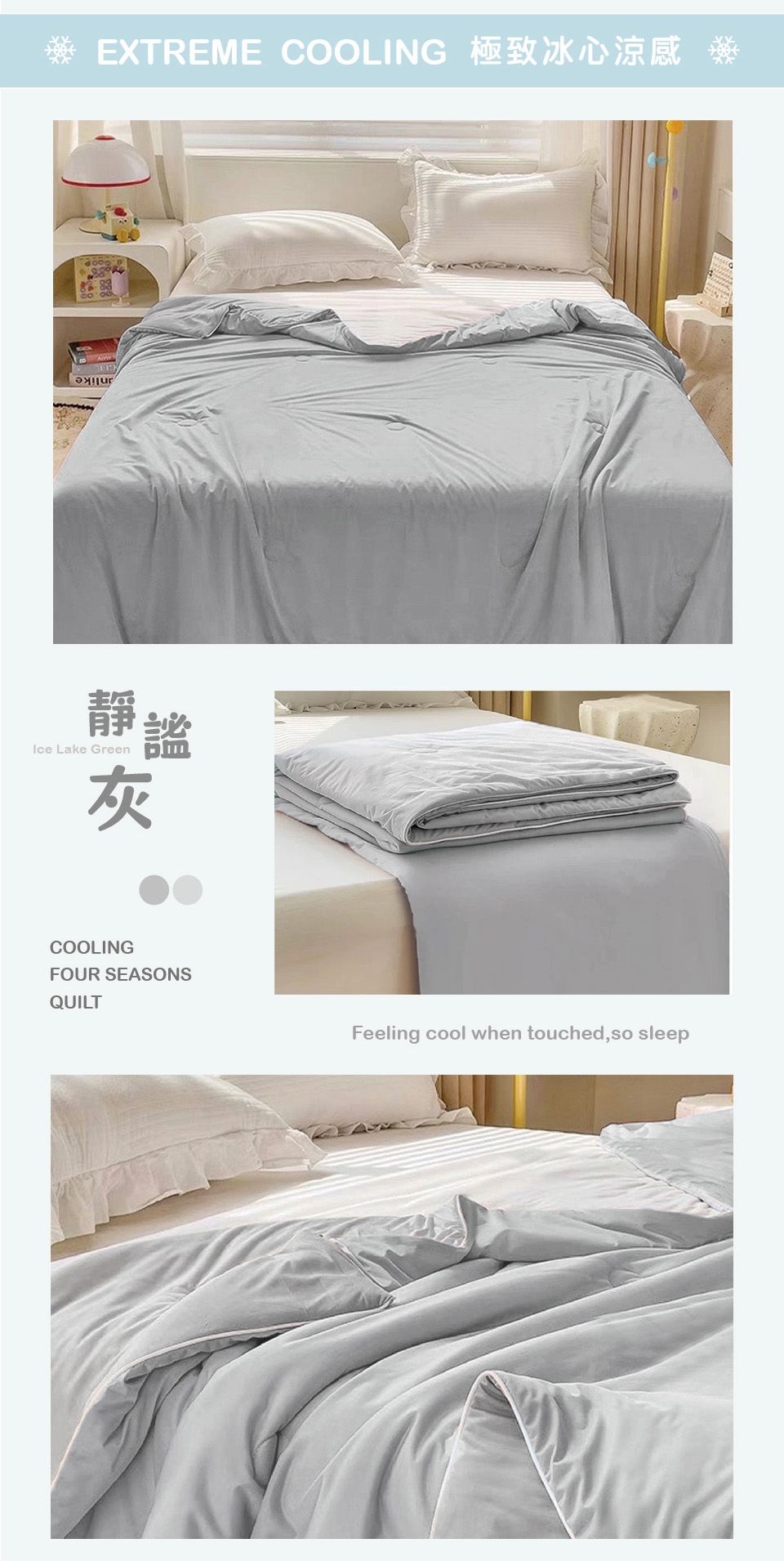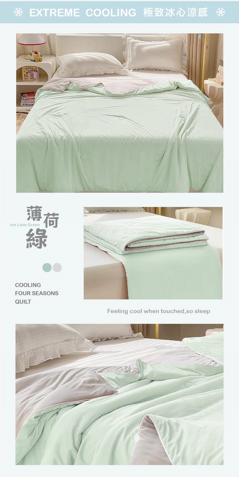 手感細膩絲滑,導熱效果強,接觸後肌膚能瞬間感到冰涼舒適。節能省碳又能好眠一整晚,保持清爽不黏膩的膚感!
