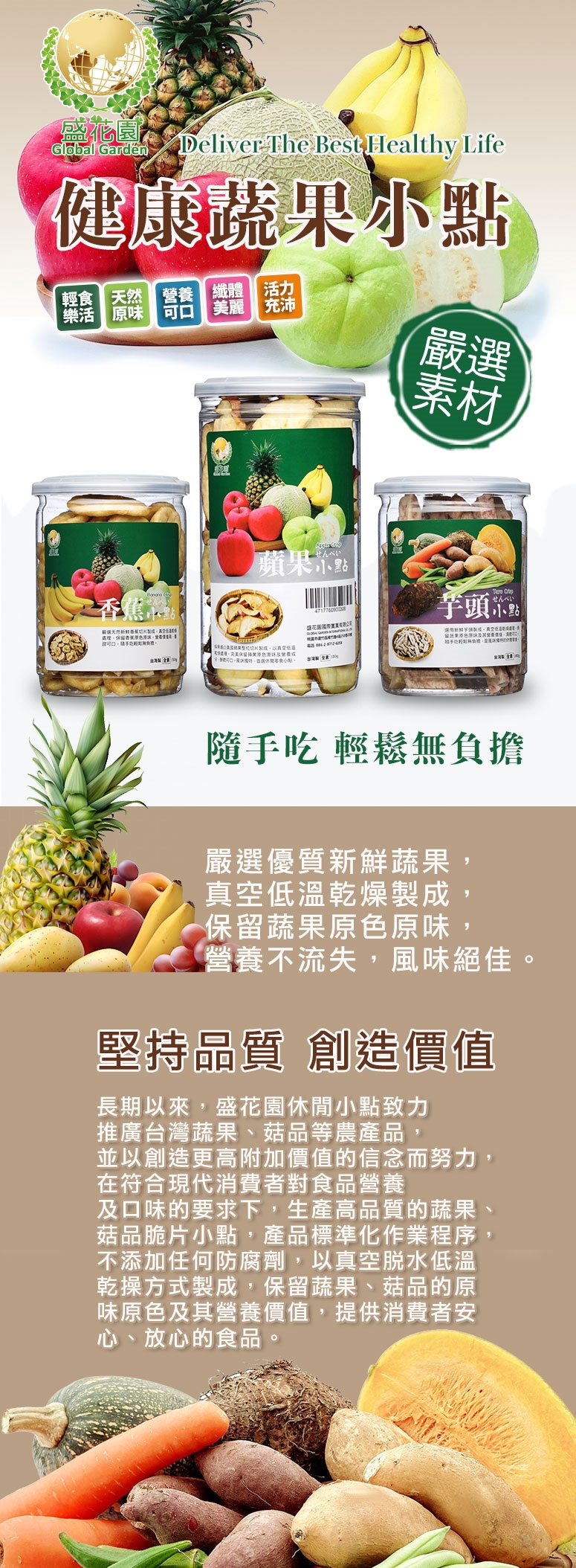 以真空低溫乾燥製成,完美保留蔬菜原色原味,酥脆爽口,首選休閒零食小點。