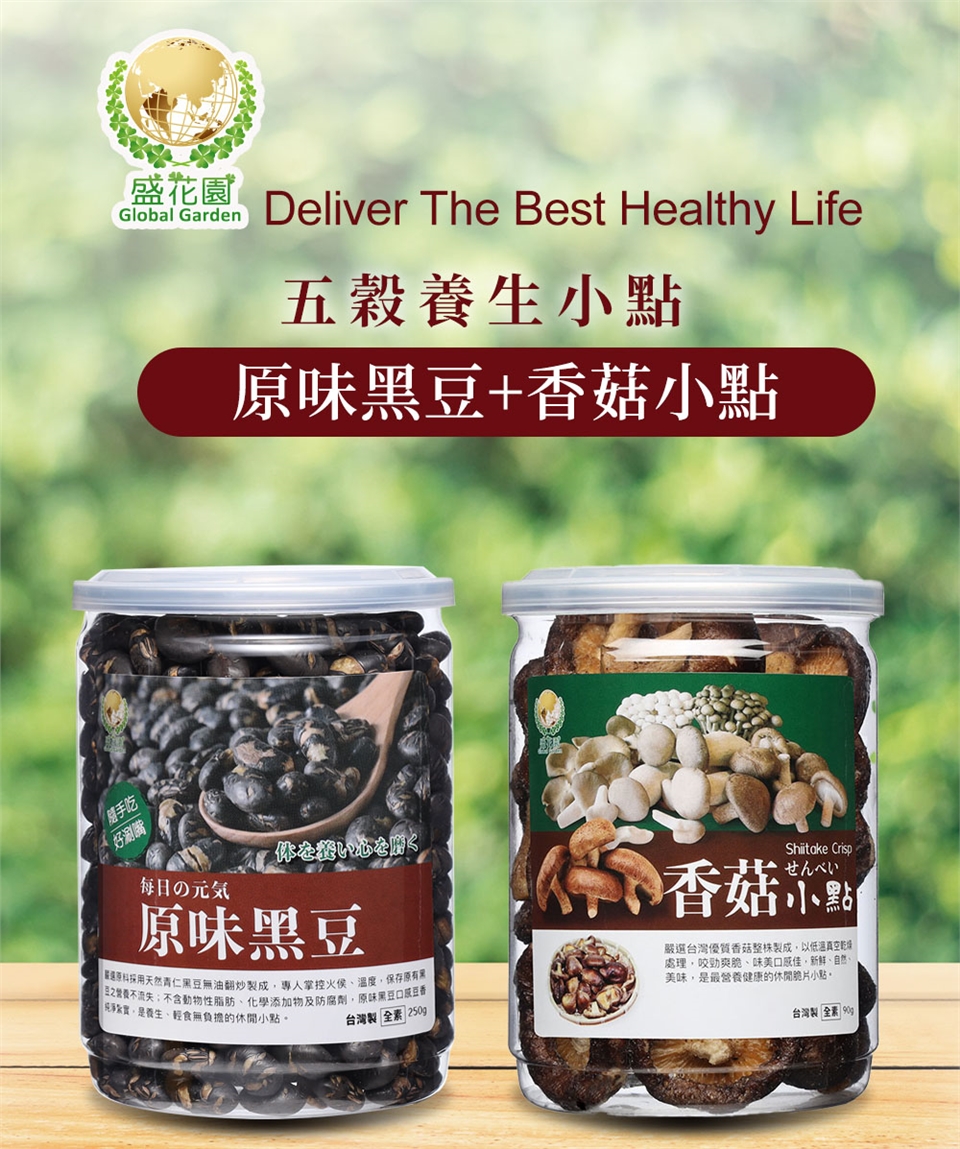 【盛花園】原味黑豆+香菇小點雙享二件組