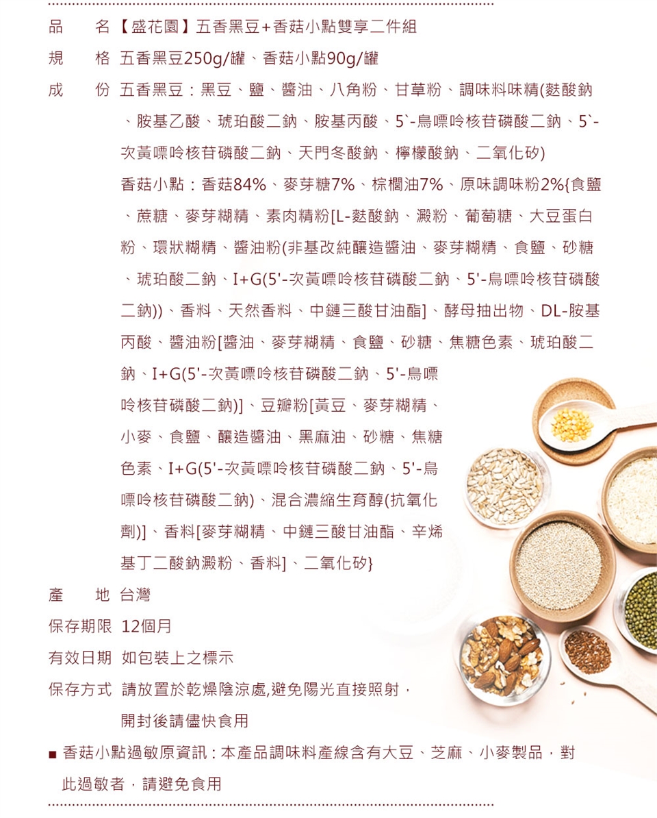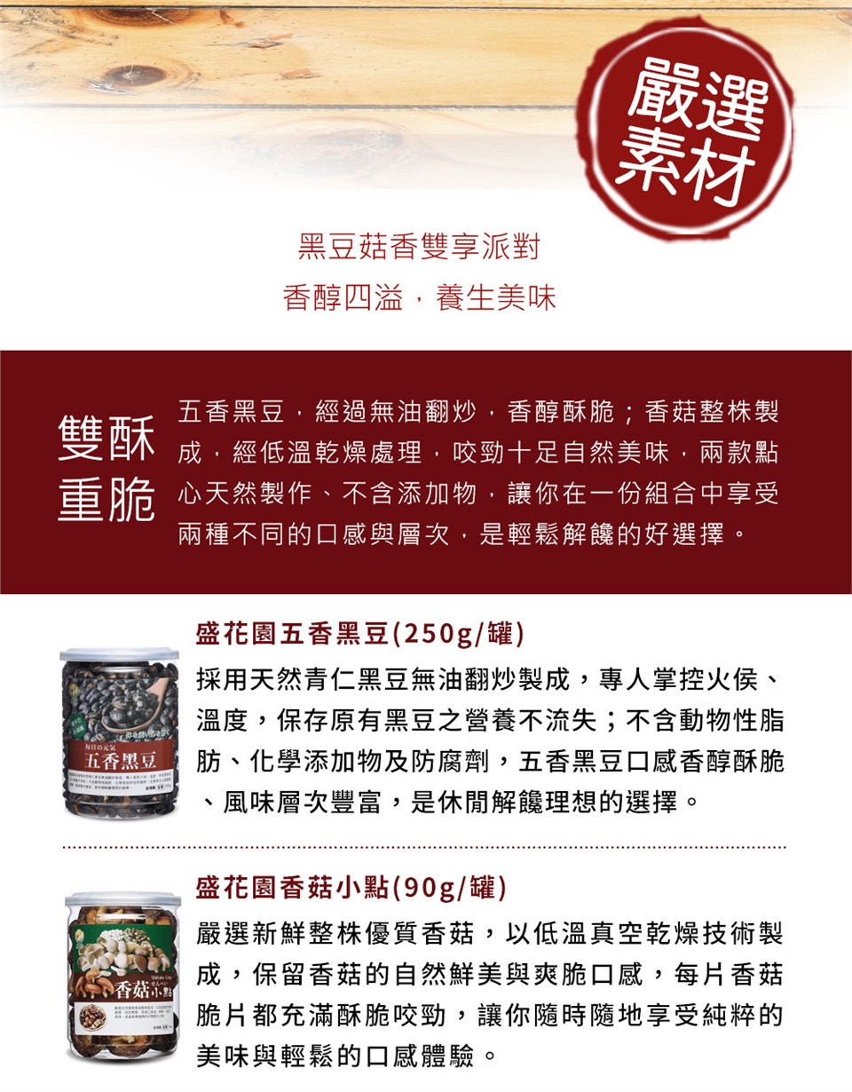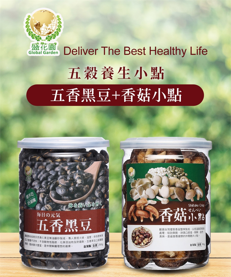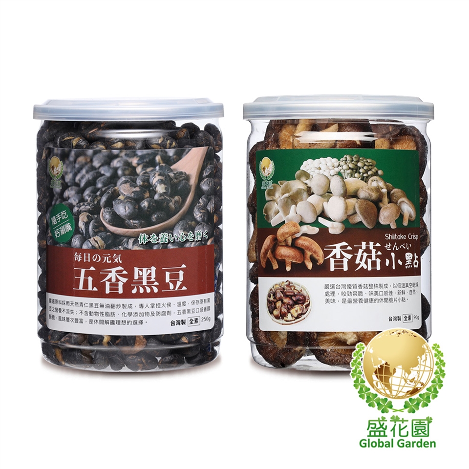 【盛花園】五香黑豆+香菇小點雙享二件組