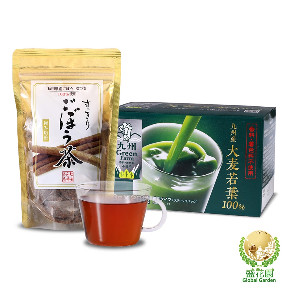 【盛花園】日本原裝大麥若葉青汁20入+秋田白神牛蒡茶15入養生組