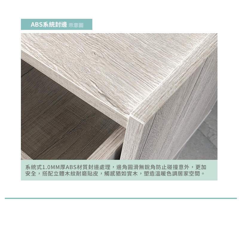 系統式1.0MM ABS封邊處理,質感細緻不刮手,觸感猶如實木!