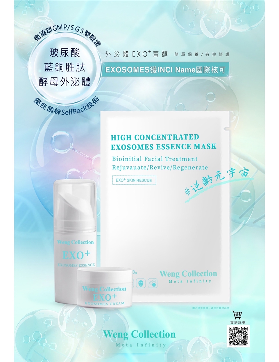 每日保養使用外泌體精華+外泌體乳霜 最強修護清爽無負擔。一週使用 外泌體面膜 1~2次加強修護