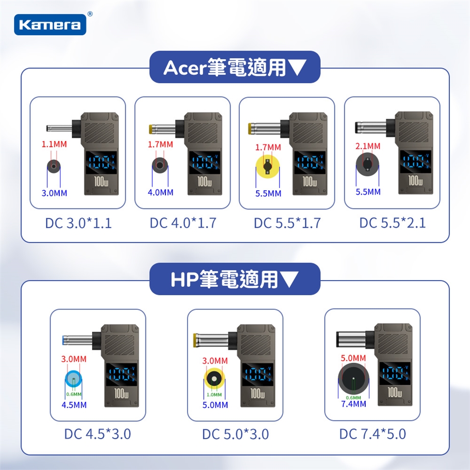 ※購買前,請務必確認您的筆電型號、充電孔是否與轉接頭規格相符,再進行選購。