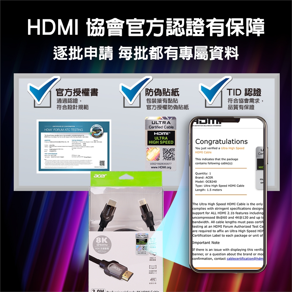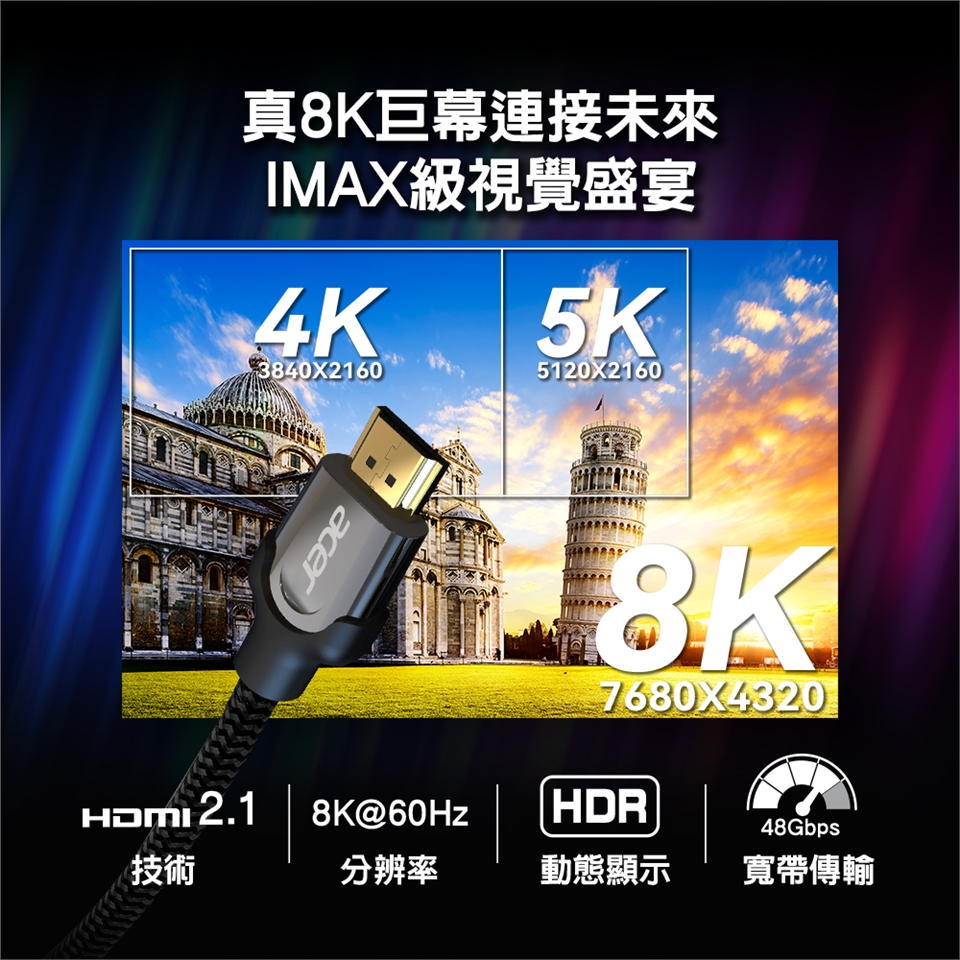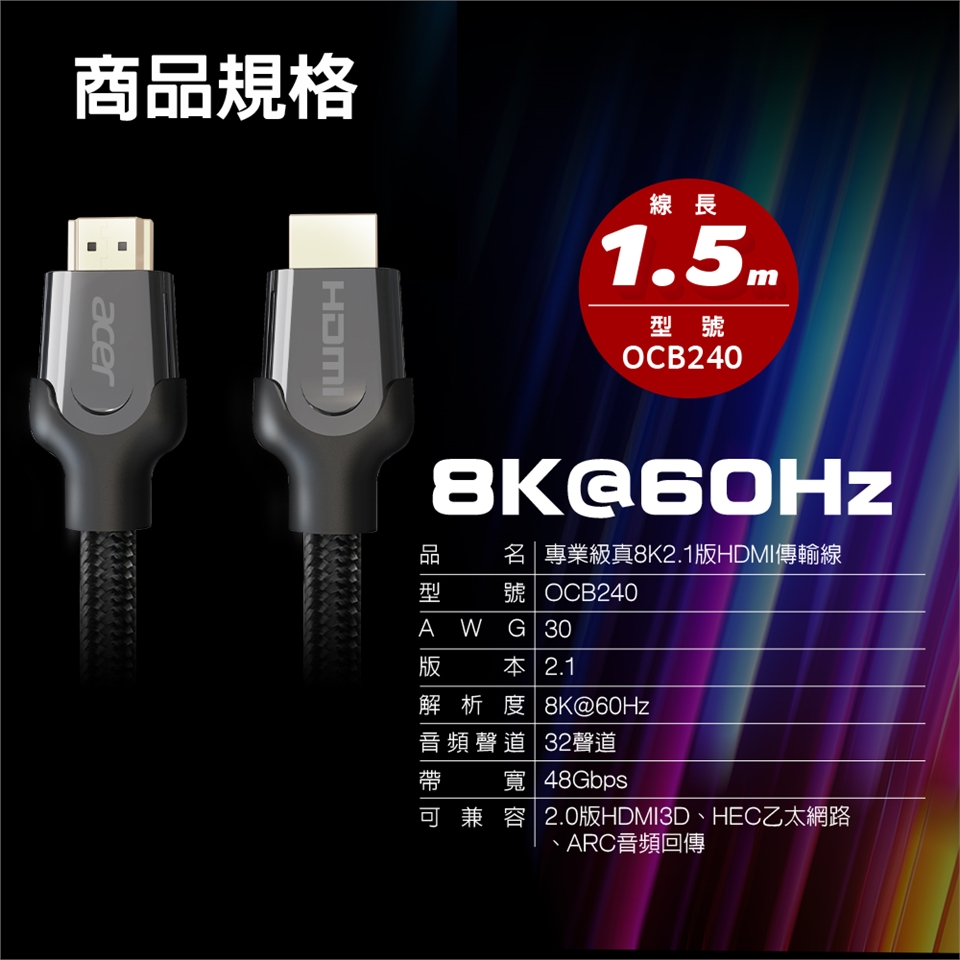 ACER 專業級真8K 2.1版 HDMI傳輸線 1.5M OCB240