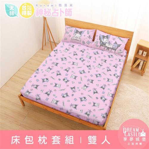 享夢城堡 MIT卡通天絲雙人床包枕套三件組5x6.2-三麗鷗酷洛米KUROMI 神秘占卜師-粉