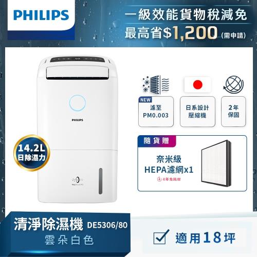 PHILIPS飛利浦 14.2L抗敏清淨除濕機-雲朵白 DE5306/80