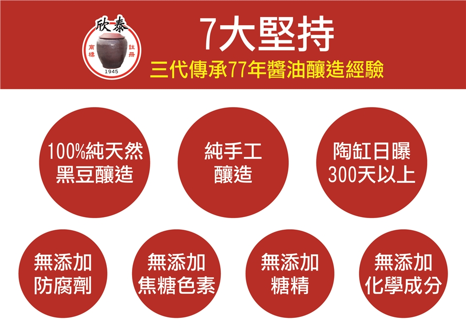 贈 品:欣泰正蔭油(100毫升±3%/瓶)*1瓶(開放體驗)