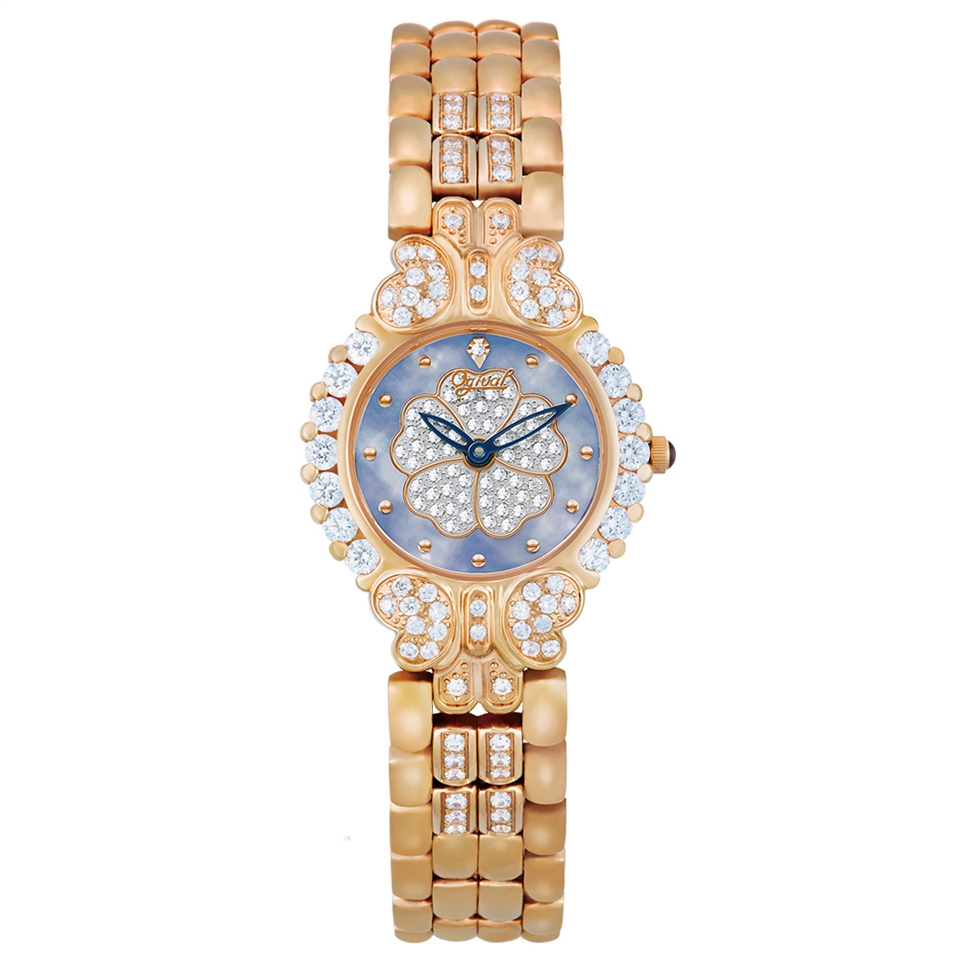 【Ogival 愛其華】山茶花系列 渲染海藍珍珠貝真鑽腕錶 玫瑰金