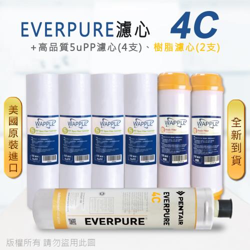 【Everpure】美國原廠平行輸入 4C 濾心+高品質前置5uPP濾心+樹脂濾心(7支組)