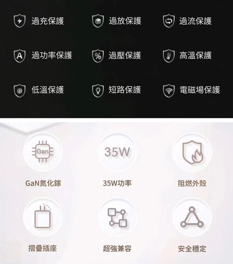 雙口35W快速充電器,氮化鎵芯片公藝