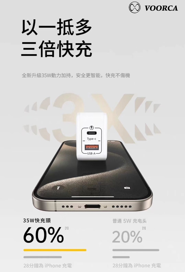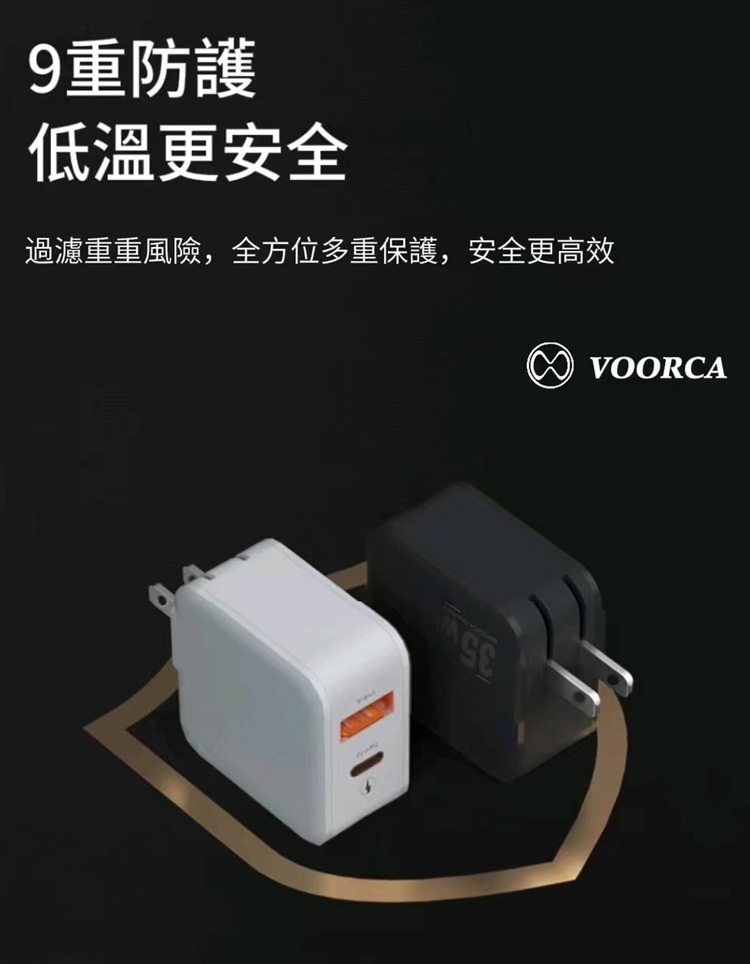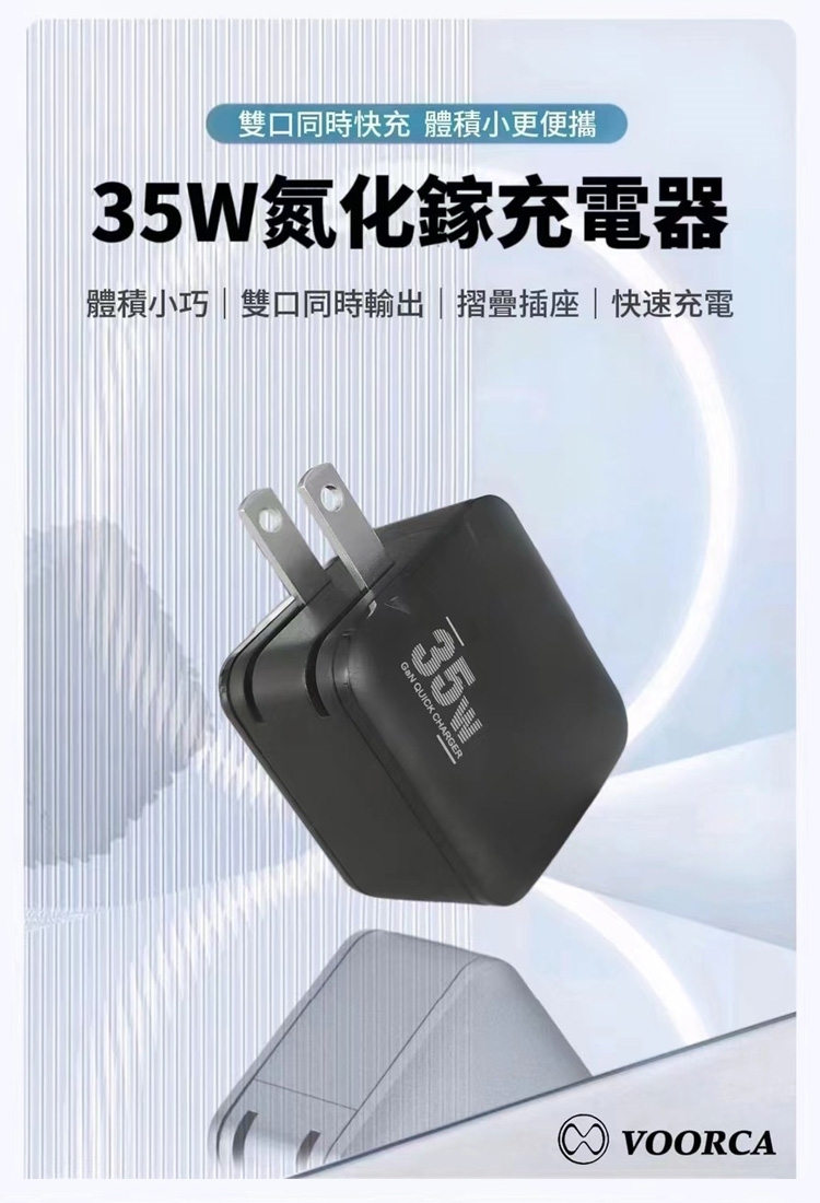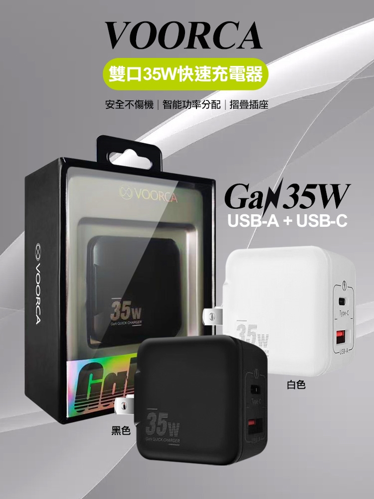 VOORCA 1A+1Type-C雙孔 35W氮化鎵快速充電器