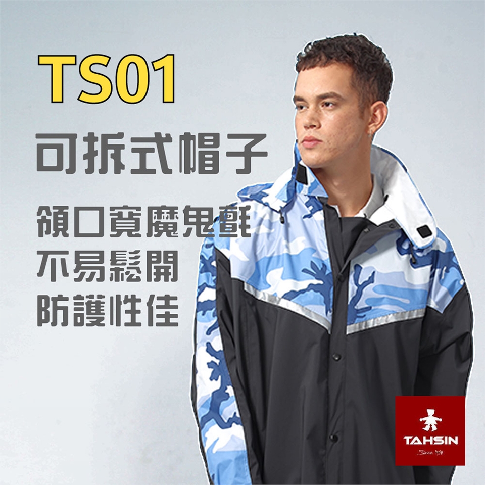達新牌 TS01 尼龍全開雨衣 藍色迷彩(加大背包空間/袖口升級版)
